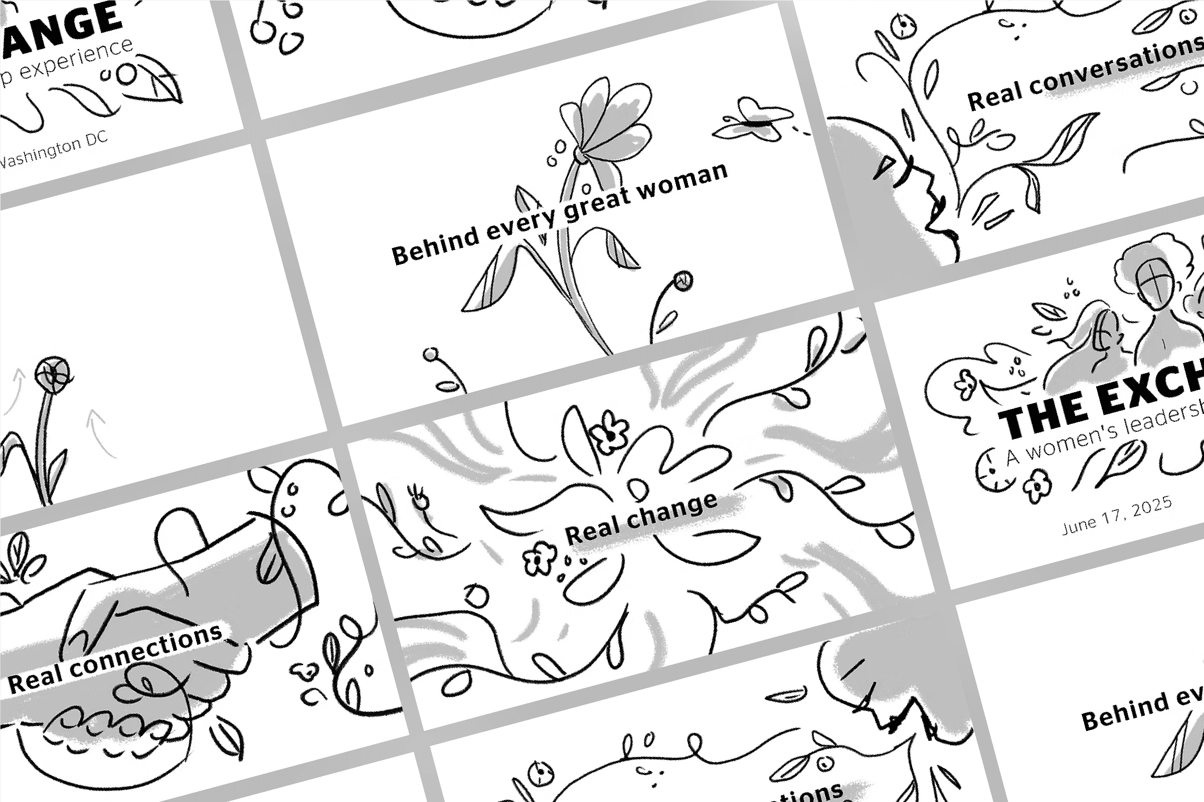 From the first conversation about the Women's Leadership Experience, the direction was clear: this event had to spark strong emotion, not just look pretty. We built a creative concept structured around themes organic growth, resulting in something that felt like a mature, nuanced expression of feminine identity rather than a generic girl-power event brand.